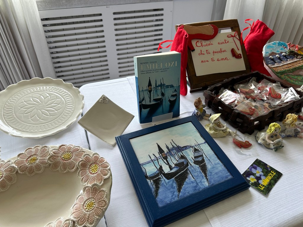 La rassegna ricca di opere d’arte, dipinti, fotografie, libri e lavori di artigianato in ceramica ed in legno , e’ stata impreziosita dalla musica dei Cantori popolari Flegrei.
