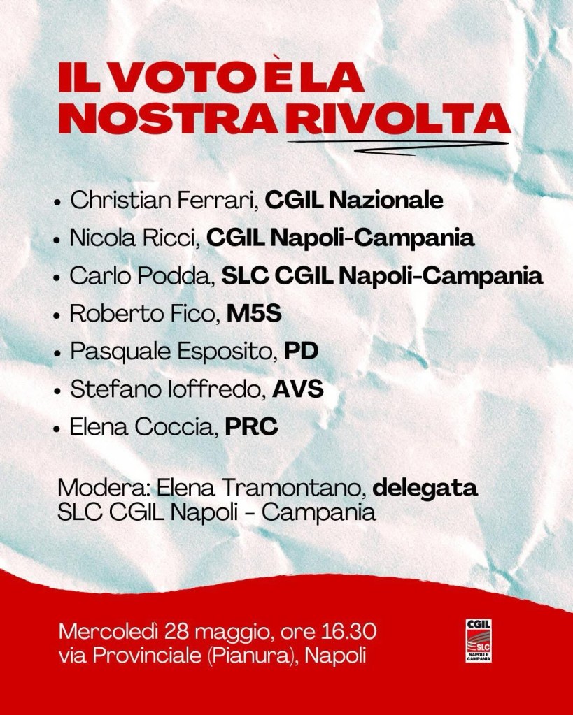 Nel quartiere di Pianura, si è tenuto un incontro organizzato dalla SLC CGIL Napoli Campania, con i rappresentanti del Sì al prossimo referendum del 08-09 giugno 2025. Tanti cittadini hanno ascoltato le motivazioni e l’importanza della partecipazione alle urne, su temi fondamentali quali le tutele e la sicurezza sul lavoro e il diritto di cittadinanza.